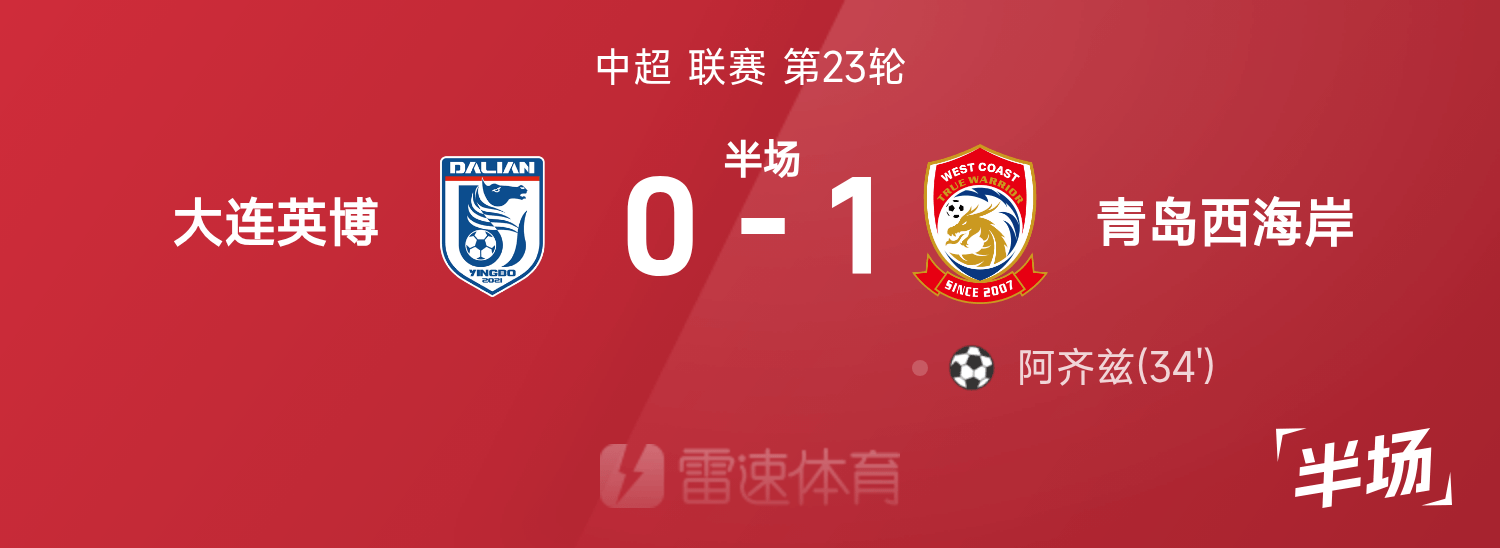我看了25轮中超比赛,大连英博主场碰了个钉子,0比1输给青岛西海岸。阿齐兹那球是真狠,第34分钟一脚扫射绝杀,直接让英博蒙了。但说实话,英博不是没机会,半场压着打,门前险象环生,硬是没能进一个。